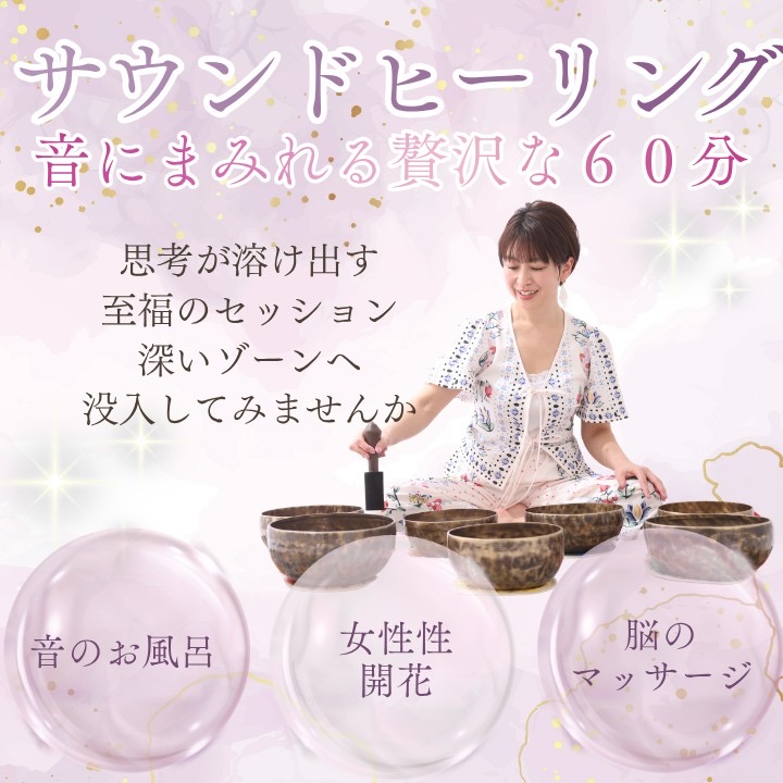 シンギングボウルによる音の振動を全身に浴びる事で、脳疲労を癒やし、自分軸回復、女性性開花に導くセッション